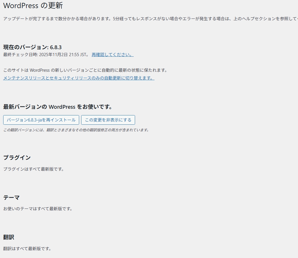 ※再インストールによって設定や投稿データが消えることはありませんが、念のためバックアップを取ってからお試しいただけますと安心です。