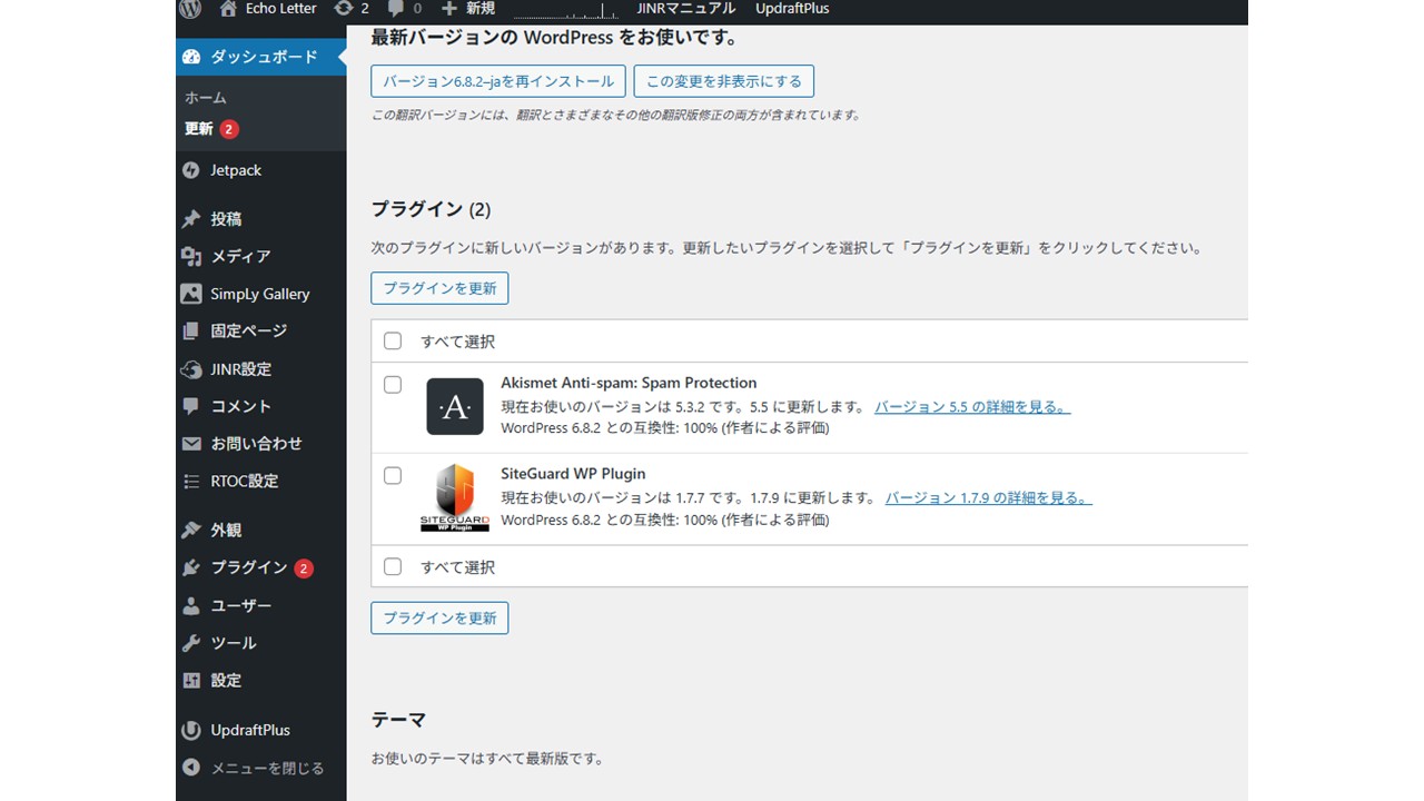 管理画面から更新に進んでもテーマの最新版がでてきません。現在のver.は1.3.7です。どのように対応したらよいでしょうか。WordPressは6.8.2です。よろしくお願いいたします。
