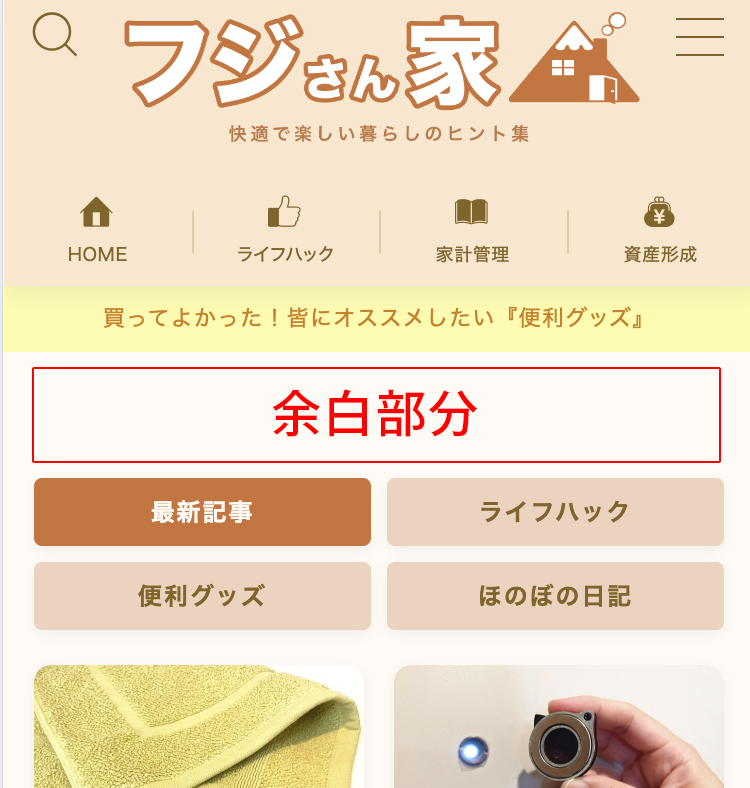 スマホ版で見るとより余白部分が分かりやすいため、そちらを添付させていただきました。