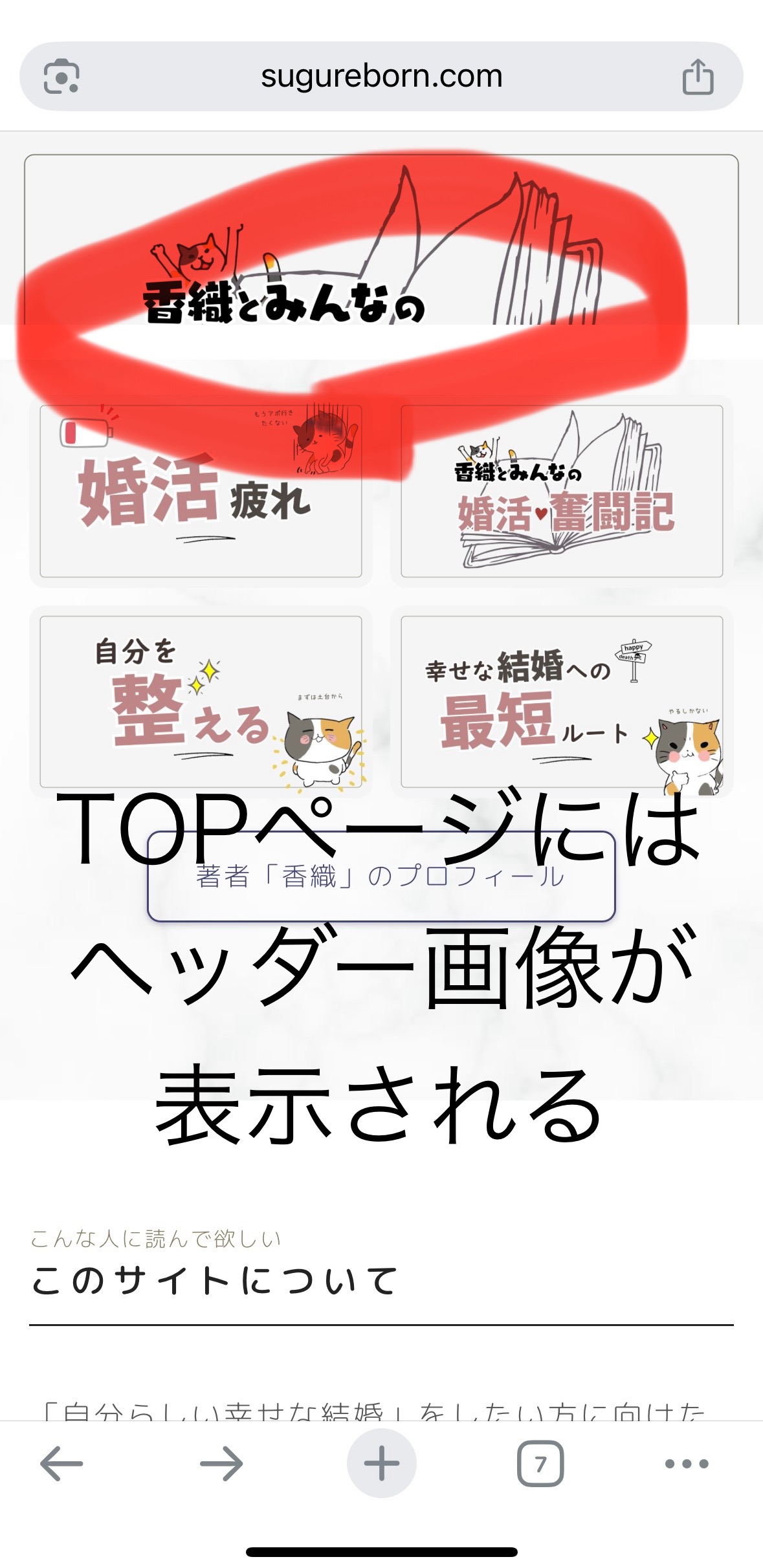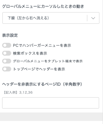 設定から「TOPページにヘッダーを表示」をオフにしています