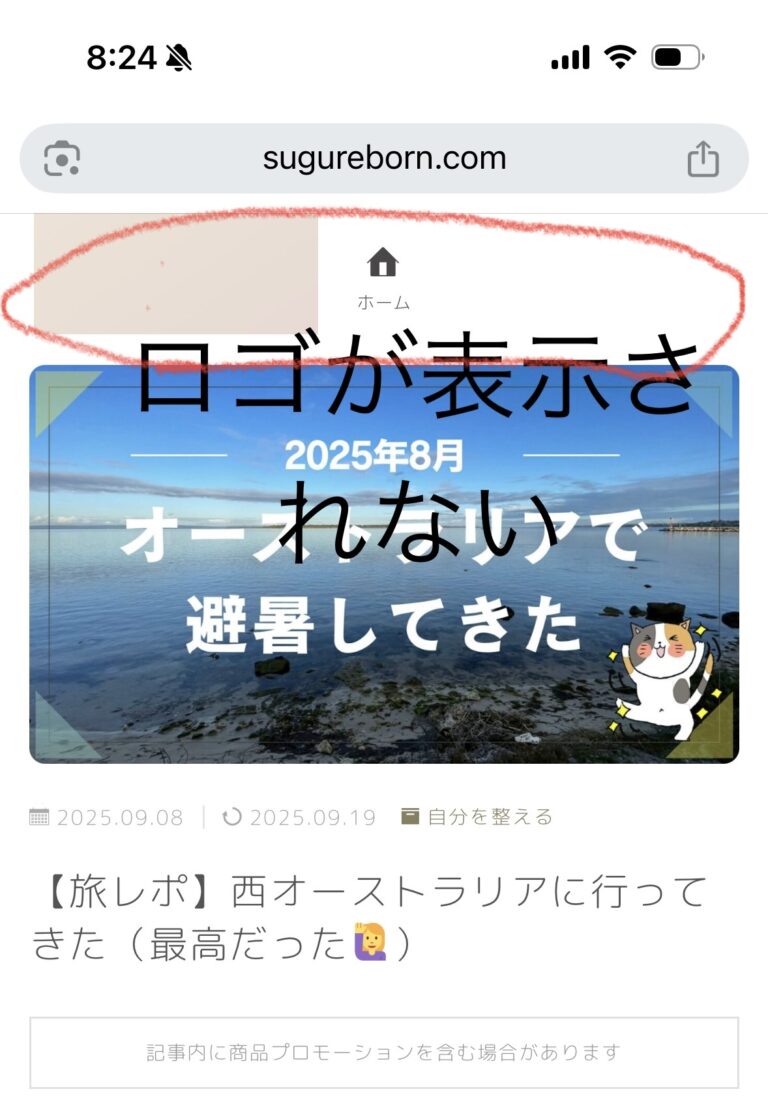 ヘッダー画像は諦めてロゴ画像を表示させようとしましたが、こちらも表示されません。
