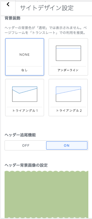 ヘッダー画像ですが、「サイトデザイン設定」→「ヘッダー背景画像の設定」から設置すると反映されたのですが