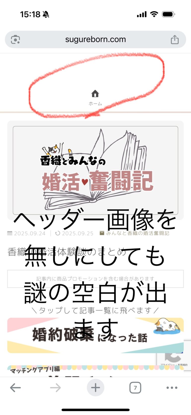 関係あるかわかりませんが、試しにヘッダー画像を消してみても謎の空白が上部に現れます