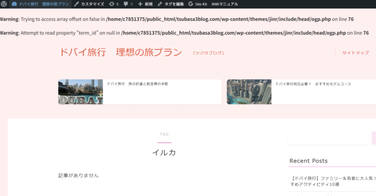 また、タグ編集ページで「表示」をすると、エラーが出てしまいました。