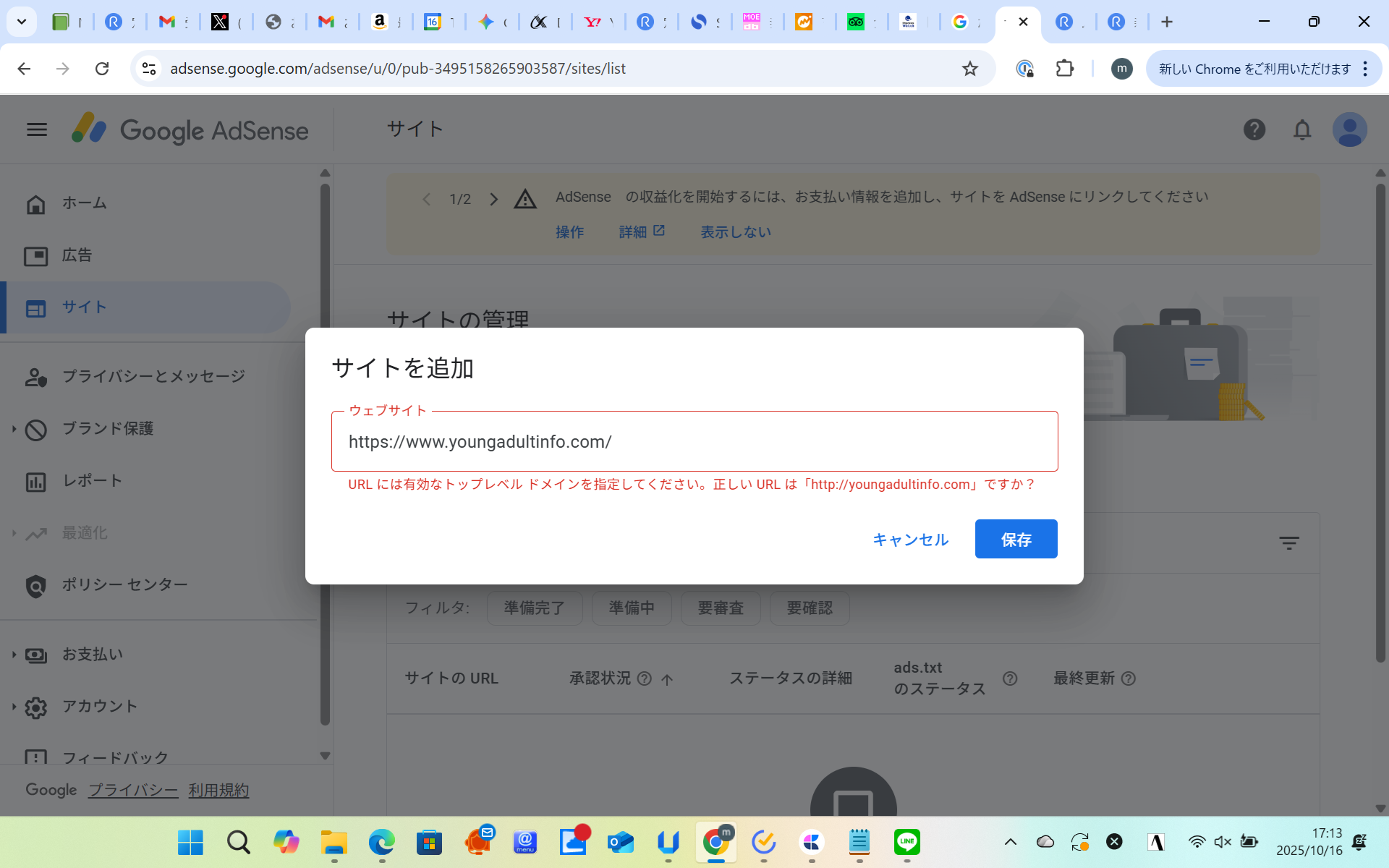 Googleアドセンスの審査に申請したところ、正しいトップレベル ドメインを提出してくれ、と言われ申請できませんでした。どのような問題点が考えられるのでしょうか?