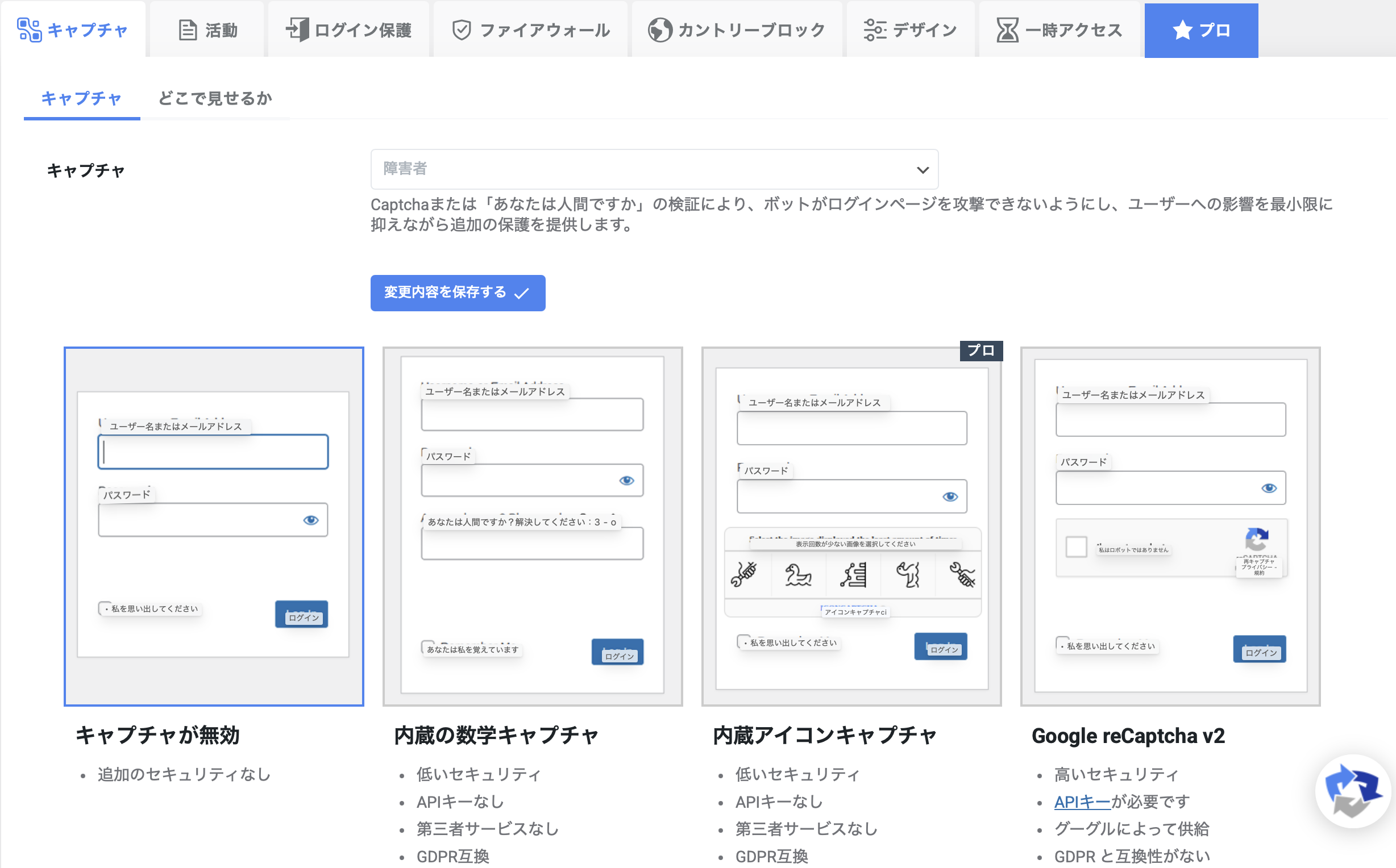 画像の表示で問題なければいいのですが、マニュアルではre CAPTCHAタイプをv2と「私はロボットではありません」チェックボックスを選択されていますが、設定変更することができなかったです。